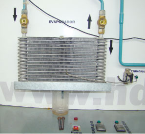 O líquido passa pelo filtro secador, para retirada da umidade interna. A próxima passagem é pela válvula de expansão, que transforma o líquido de média temperatura para o gás